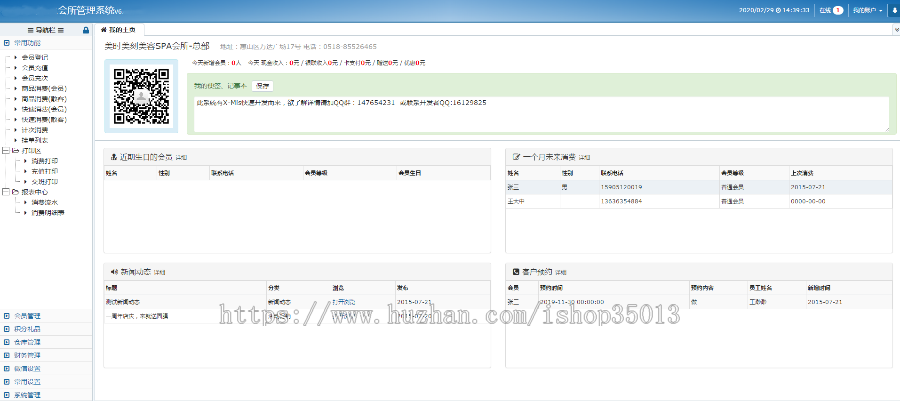 会员等级,短信余额,短信发送记录,新闻管理,预约管理,客户评价,美容顾问