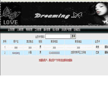 管理员:会员管理 人事管理 考勤管理 工资管理 器材管理 工资管理 系统用户管理