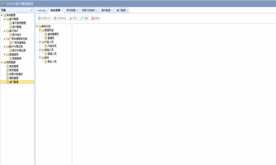 3.可以动态分配权限按钮,分配角色权限,目录结构,栏目的链接都可以修改。权限管理非常灵活