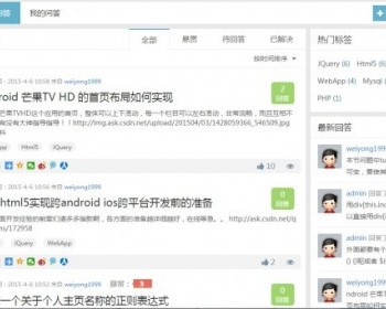 这是一款仿CSDN的问答系统,系统界面简洁美观,功能多样性,内置一套完整的奖惩机制。系统支持特点:数据独立,但和discuz完美融合。支持顶赞问题和答案,支持用户关注收藏某个问题(用户对于该问题可能也存在疑惑,方便用户快速获取信息,这就是高效问答系统),支持提问悬赏,采纳答案分为:手动选择和自动采纳(后台规定多少天内若提问作者没有选择答案,则系统自动选择赞最多的为答案),支持自定义提问题和回答鼓励积分,提问和回答被删除扣除积分,可以规定按天奖惩的次数。