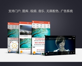 本手机模板支持门户、文章、图库,视频(HTML5)、音乐(HTML5),内置广告系统,无限配色