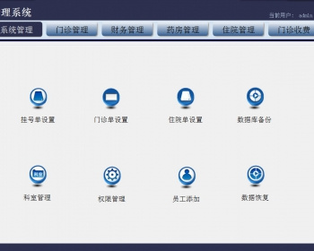 功能菜单:门诊医生 系统管理 门诊管理 财务管理 药房管理 住院管理 门诊收费 药库管理