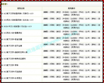4.如何采集,这个我可能说的也有不对,但是目前我自己就是这么用的,一般选用独立的云主机,数据库盘或者d盘保证在100G以上,后期数据会很大的,在服务器上打开网站后台,点击采集——采集规则——看里面有几个标注的是采集封面的,实际就是采集小说列表的,打开采集选项让他自动采集着,采集着会自动生成一些小说名称,都设置成全自动就行,然后点击打开全自动,打开页面采集(别关闭),然后关闭服务器界面就行了,平时进去偶尔的添加一些采集关闭一些采集完的连载! 这个是我自己使用的方法!