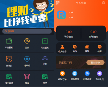 支持自动批量匹配和手动匹配排单。支持批量生成激活码。币种分为排单币、静态钱包、动态钱包、积分、商城积分、平台积分。支持币种之前兑换比例设置。支推荐人数奖励比例设置。除了排单收益还增加了诚信奖。商城支持价格和积分混合购买,支持商家入驻。