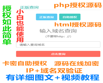 一款可以针对php程序代码和html程序代码进行授权加密的源码,源码后台功能强大,可以分类授权、可以生成卡密授权、支持IP和域名双验证授权,可以在线修改授权时间、在线修改IP和域名!