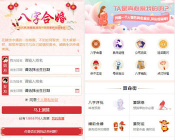 总14个测算项目:01、2019爱情运 02、八字精批 03、2018运程 04、姓名配对 05、姓名详批 06、综合分析 07、姻缘分析08、十年大运 09、月老姻缘 10、一生财运 11、紫微斗数 12、八字合婚 13、号码分析 14、宝宝起名