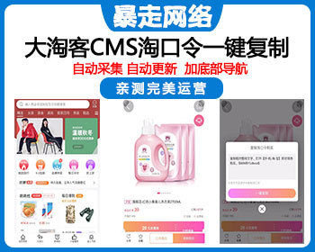 大淘客CMS修改版本添加淘口令,一键复制。淘宝客建站网站CMS源码