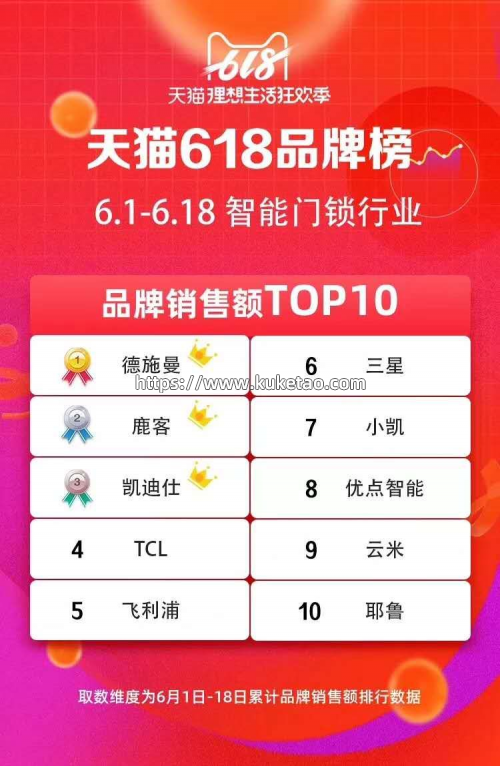 618大战刚刚落下帷幕,无论销量还是销售额,本届年中大促都有着全新突破。在百花齐放的销售品类中,近年兴起的智能锁行业爆发出了“洪荒之力”,成为各大平台销售额增长的主力军。从京东、天猫6月18日全天数据来看,各品牌均增长迅猛。相对而言,智能锁领军品牌德施曼,在近三年的各类大促中表现均非常突出,此次618更是一骑绝尘,奠定了线上的绝对领导地位,而行业线上的二三四名这几年始终在沉浮变换,没有哪一个坐稳。