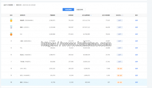 ▲6月18日天猫生意参谋《电子门锁类目品牌、店铺实时排名》