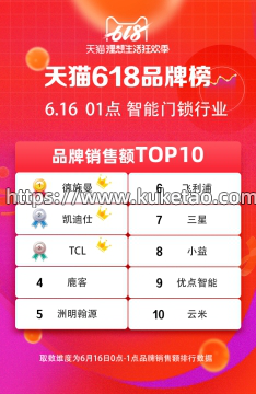 ▲ 6月16日前1小时天猫《智能门锁行业品牌销售额TOP10》