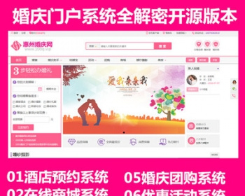 婚庆门户系统是专门针对婚庆行业开发的一套门户网站系统。系统内置了一站式婚庆服务功能模块,如找酒店,婚纱摄影,婚车租赁等;新人可以在平台上面找到合适的酒店,预约婚纱摄影。