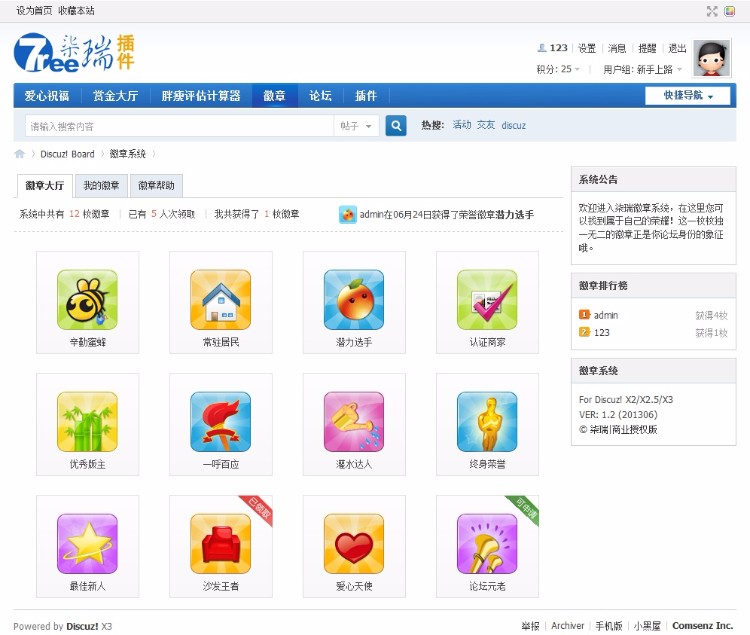 徽章系统 超值商业版 柒瑞独特设计的增强版Discuz!徽章系统