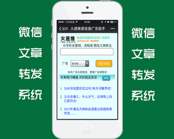 火速推微信朋友圈广告植入源码,朋友圈广告自己来发布,支持任意微信文章,转发之后自动在朋友圈文章中植入广告,别人打开文章会看到你的广告,带广告的文章会被别人无限次帮你转发,获得超强宣传效果。转发文章到朋友圈自己添加广告,这种广告形式比直接发朋友圈硬广更有效,创新才有未来!