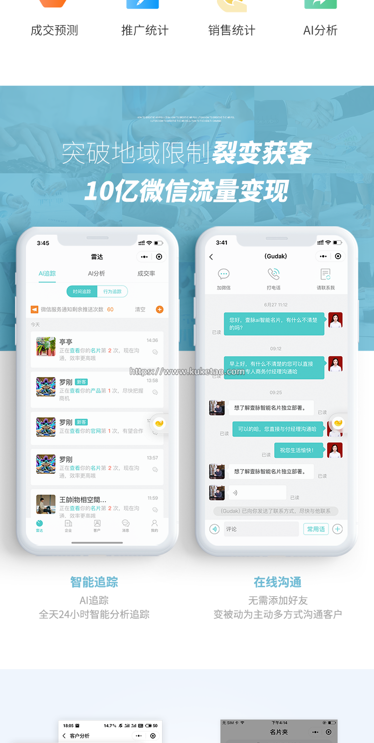实时追踪客户轨迹,标签化管理客户,依托AI数据分析生成成交漏斗,预测成交率