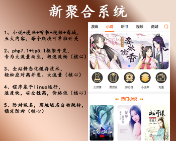1、小说+漫画+听书+视频+商城,五大内容,每个版块可单独开关