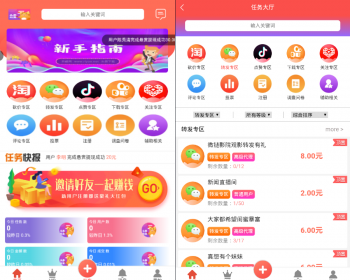 首页任务接单,主要分为抖音和快手任务关注点赞,用户可以领取符合要求的任务,复制任务打开app关注和点赞,截图提交,后台审核通过后即可领取佣金,根据不同的等级每天领取的任务个数和单价都不一样,后台设置,还可以通过海报推广好友,获取推广的返佣,同时还可以领取推广下线的任务返利。