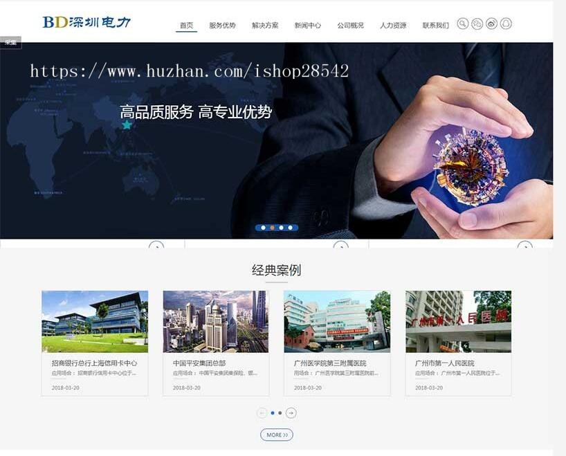 2、效果相当的炫酷,相当简洁大气高端,模板简单,全部已数据调用,只需后台修改栏目名称即可