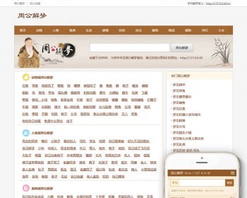 织梦内核开发的模板,该模板属于仿周公解梦类企业使用,自带手机移动端,同一个后台,数据即时同步,简单适用!原创设计、手工书写DIV+CSS,兼容IE7+、Firefox、Chrome、360浏览器等;主流浏览器;页面简洁简单,容易管理,DEDE内核都可以使用;附带测试数据!