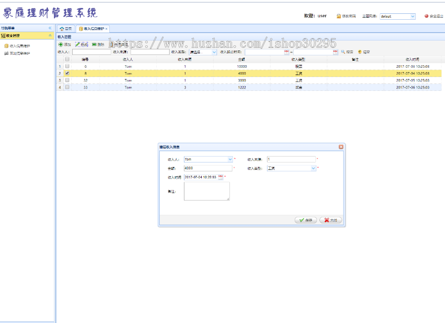 用户角色包含以下功能:报表管理,支出信息管理,收入信息管理,登陆页面等功能。