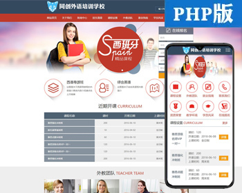 推荐培训学校网站源码程序 PHP外语教学机构网站源码模板带手机站 英文培训网站源码程序