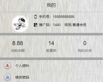 Thinkphp开发的银色豪华版机器人能量树二开源码带码支付,通过“发圈领树叶”中获取发圈图片,并发布到您的朋友圈保留两个小时以上,然后截图上传,公司平台审核后,即可获得随机数量的树叶