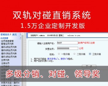 运营版双轨直销系统,直推层碰对碰领导奖见点重消等各种奖类,会员资料字段后台可控;奖金比率后台参数设置。