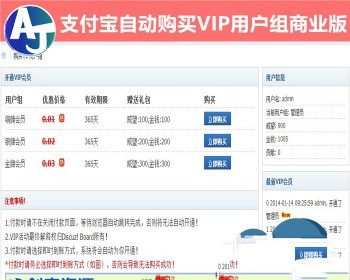 可以同时设置多个用户组。会员通过支付宝付款后,系统自动设置会员的用户组以及有效期。自动赠送相应的积分,可以同时设置多个积分类别。绿色插件,不修改任何系统文件!请放心使用!