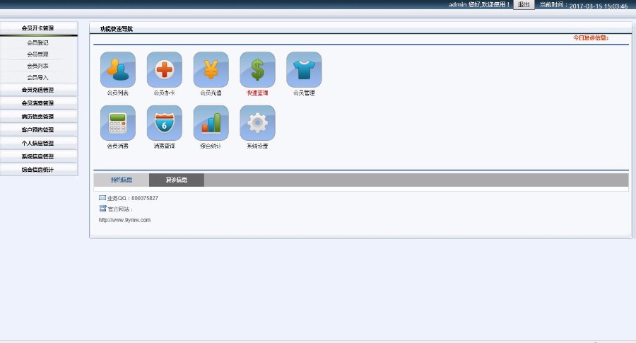 2.主要功能:会员添加 会员管理 会员充值、消费 非会员消费 计次消费 病历添加、管理、查询 复诊病历自动填写 支持银联消费、医保消费、现金、会员卡消费 支持会员积分和积分消费、会员卡类别管理、用户管理等