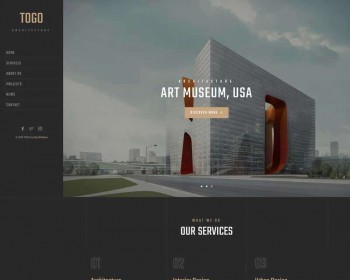 侧边固定导航的室内设计,房屋建筑设计网站响应式模板。适用于:建筑公司,室内工作室,建筑,家具行业网站展示模板。