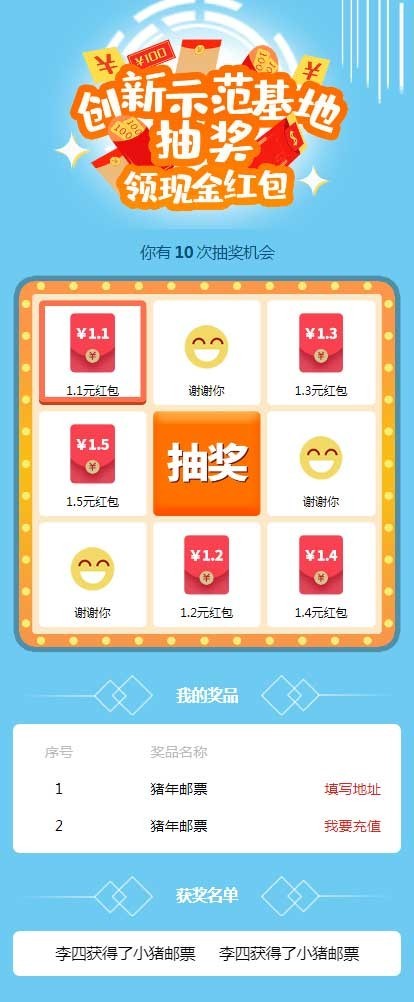 手机移动端九宫格抽奖活动页面模板(带演示)