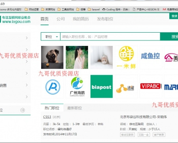 程序说明:仿拉勾网垂直招聘网站源码人才招聘源码,采用thinkphp开源框架开发,仿85%以上的功能,带部分测试数据。主要功能包括个人发布简历公司发布职位。非常不错的垂直招聘网站源码。