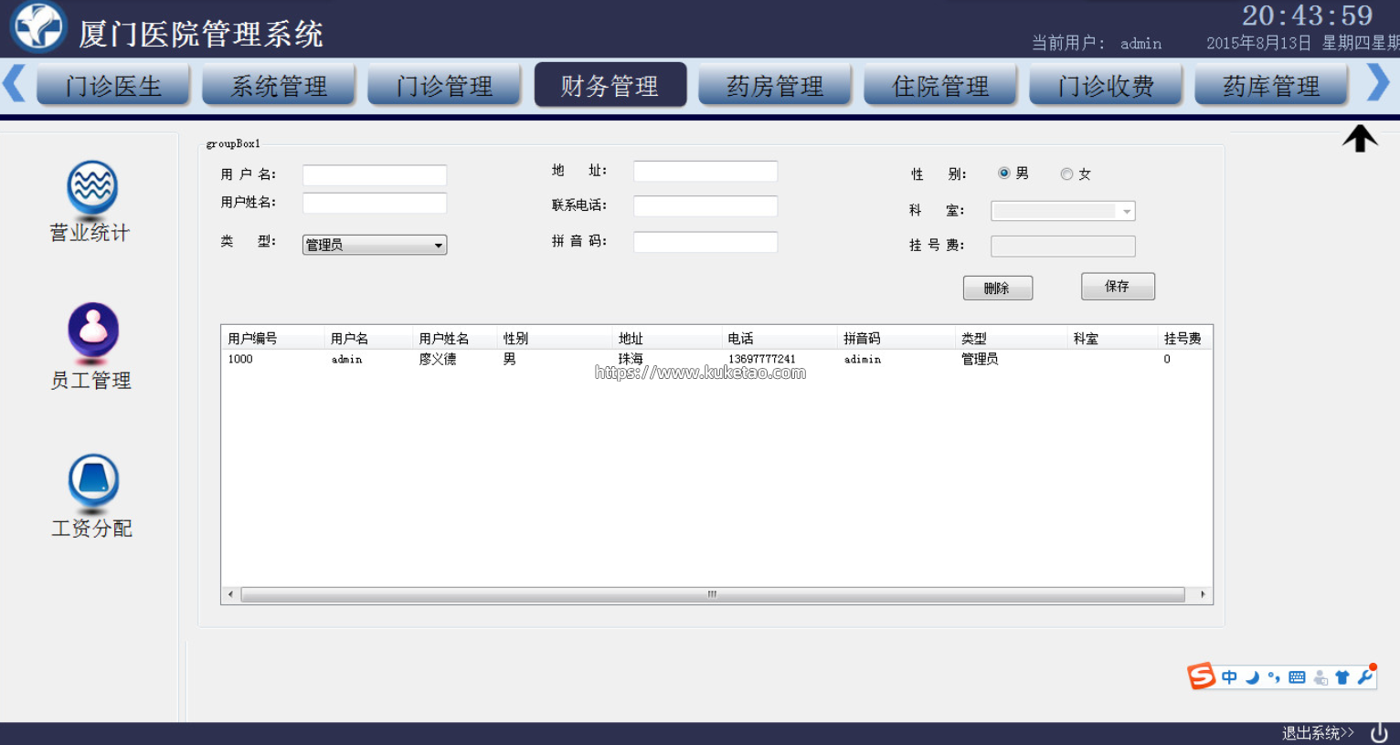 门诊医生 系统管理 门诊管理 财务管理