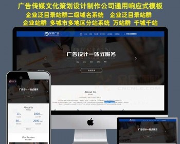 广告传媒文化策划设计制作公司H5响应式建站群模板多城市分站源码