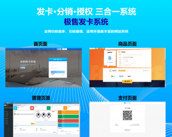 极售企业级发卡网,集成了发卡,分销代理,授权API等三大功能,内设完整企业级支付接口及个人签约,支持多层代理开设多域名分站。集成卡密授权查询API,可实现从发卡、售卡、用卡全自动化流程。