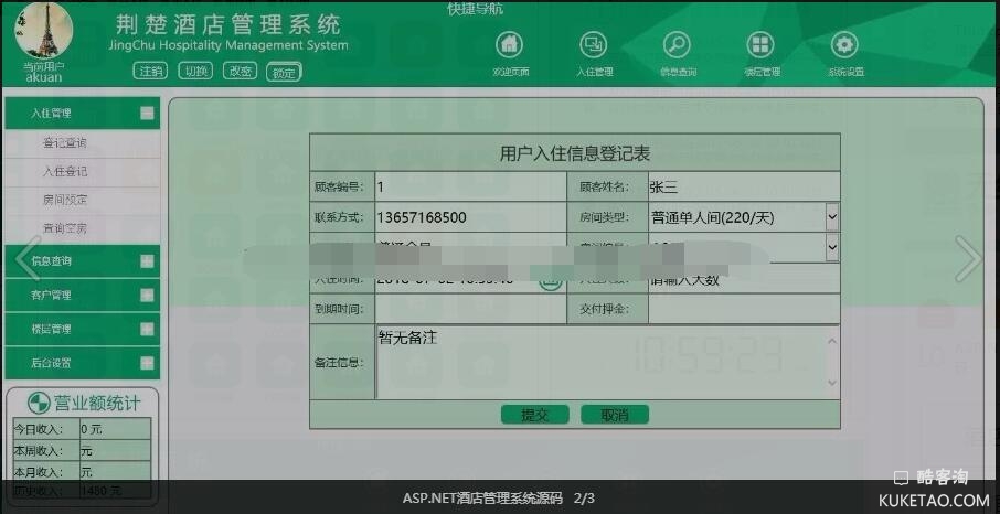 ASP.NET酒店管理系统源码