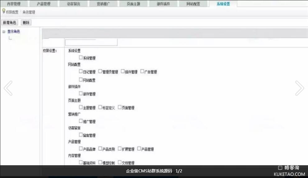 系统设置:权限配置、多语言/站群、数据库