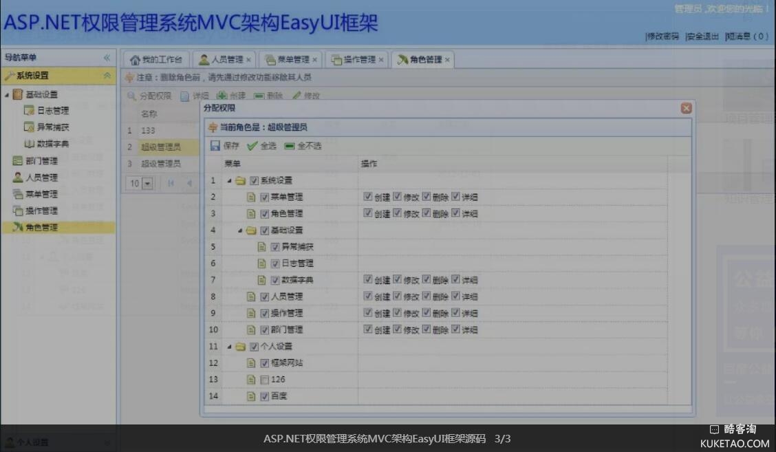 ASP.NET权限管理系统MVC架构EasyUI框架源码