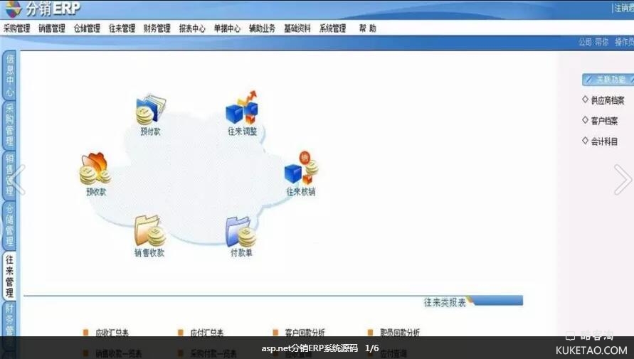 以上图表均为管家婆A8新版本的基本图式,具体详细的财务、人事、固定资产、应收应付、往来帐目、采购、销售、库存、铺货、供应商、销售商、分店或办事处、套帐、查询、报表等详细阅读如下:二、使用部分—即开帐,三、使用部分—即开帐后部分,四、功能键与专题介绍。