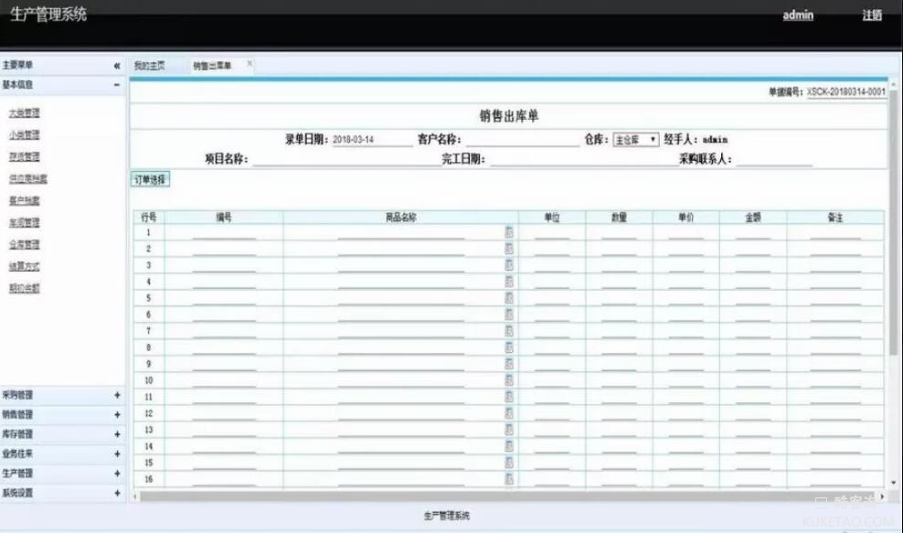 6、生产管理:主要包括生产加工单,产成品入库单,材料出库单,单据明细,单据统计