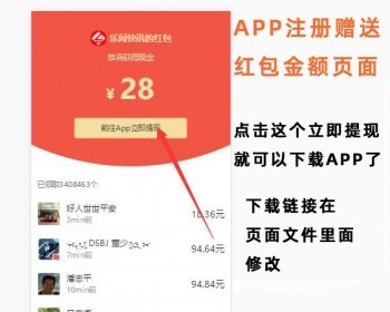 APP推广红包落地页 适合首次下载安装注册送金额的APP,推广效果好