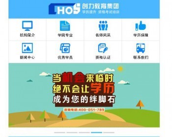 适用于做学历教育的培训机构网站,带有报名订单系统,以蓝色为基调简洁大气,适合触屏手机。底部漂浮等功能。