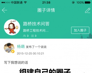 [圈子]加入他人创建的圈子,自己常见自己的圈子,圈子内如同群聊,同一类群人的群;
