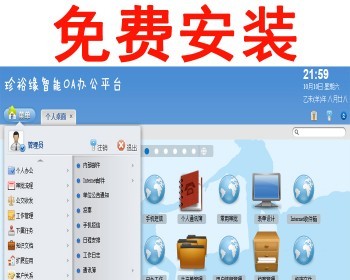 个人办公: 内部邮件---系统内部的信息交流、文件交流、信息提醒等 Internet邮件---接口外部邮箱,采用pop3和smtp协议代收代发 单位公告通知---管理公告通知、新闻等信息,可选定特定部门发送 投票---内部信息投票,每个用户拥有一次投票权利 手机短信---发送内部或者外部的手机短信消息,用于提醒等 日程安排---个人日程以日历形式重点体现,到期自动提醒 工作日志---工作过程中的记录以及工作日志等 通讯簿 --- 包含各种分类,主要用于联系使用 个人设置 --- 设置个人参数、邮箱参数、提醒参数、修改密码等 审批流程: 新建工作---新建新的审批工作流,选定需要的工作新建即可 我的工作--- 个人发起的所有工作,包括已审批、未审批的所有工作 待办工作---需要当前用户进行办理或者审批的工作列表 已办工作---当前用户已经办理过的各项工作,包含历史工作 工作查询---查询系统中工作的信息,全面检索 工作监控---管理员监控运行,发现问题,可强制干预 归档工作---已办理完成的工作,自动进行归档 工作委托 --- 当前用户指定办理人,所有待办事项自动提交到委托人办理 流程设置 --- 自定义流程、自定义表单、表单各个字段在流程中权限控制 印章管理 --- 管理公章与私章,查看印章的各项使用日志等公文收发: 接收文件--- 需要接受的文件,未签收时有颜色标注 传阅文件 --- 传阅发送出去文件 接收分类 --- 按照指定文件夹分类查看 传阅分类 --- 传阅文件夹个人分类查看工作管理: 我的计划---个人工作计划,可共享给其他指定用户协同查看 协同计划--- 其他用户协同共享查看的工作计划信息 我的汇报---个人工作汇报,可共享给其他指定用户协同查看 协同汇报---其他用户协同共享查看的工作汇报信息下属任务: 我的任务 --- 个人接收到的各项任务,提交工作任务报告 任务分配--- 对下属用户分派工作任务,实时监控任务情况 下属日程 --- 下属员工的日程安排信息 下属日志 --- 下属员工的工作日志信息 下属计划--- 下属员工的工作计划信息 下属汇报 --- 下属员工的工作汇报信息 下属邮件 --- 下属员工的内部邮件信息 下属客户--- 下属员工的客户资料信息知识文档: 个人文件 --- 类同与网络硬盘、个人文件柜存储等文件存储类 单位文件 --- 单位各类文件存储区 项目文件 --- 项目实施、进度、评审等文件存储类 电子刊物 --- 电子刊物等文件存储类 重要文件 --- 特别重要的文件额外存储类 机密文件 --- 机密文件存储类 知识库 --- 各项知识库、技术资料、学习资料、单位规范等 技术文件 --- 技术类文件存储 共享文件 --- 查看各类共享的文件资料 回收站 --- 删除的文件,可恢复或者彻底删除扩展应用: 资产管理--- 管理固定资产、仪器、办公用品等 培训管理--- 管理培训信息 会议管理 --- 各项会议会议、上传会议记录 车辆管理 --- 车辆信息、使用、维修、保险、加油等 图书管理 --- 图书信息、借阅、归还等 档案卷库 --- 各类档案分卷库保存、销毁 考试管理 --- 在线考试、可分题库、题目类型、试卷制定、自动评分等 学习管理--- 在线学习、学习心得、领导批注等客户管理: 会员管理 --- 会员信息管理,即为个人类别的客户 我的客户 --- 个人客户资料、联系记录、需求等 客户管理 --- 管理所有客户资料,联系人、联系记录、需求计划等进销存类: 产品管理--- 产品管理、库存列表显示、库存报警等 销售管理 --- 销售合同、产品销售出库、利润等 采购管理 --- 采购合同、产品采购入库等 供应商管理 --- 管理各个供应商、供应商联系人项目管理: 项目信息 --- 项目各项信息、状态等 评审信息 --- 评审记录 项目进度--- 项目具体进度安排、时间进度 收款信息 --- 收款具体情况,按照项目分类 项目实施 --- 项目的具体实施情况 报销申请 --- 项目类单独报销,也可使用审批流程中的自定义流程 报销管理 --- 审批报销记录,复杂流程可使用审批流程 项目利润 --- 核算具体利润情况 数据统计 --- 数据各项统计人力资源: 考勤管理 --- 考勤记录、考勤设置、查询、统计等 人事档案--- 人事基本资料维护 人事合同--- 合同管理情况 奖惩记录 --- 奖惩各类记录管理 奖惩制度 --- 各类具体制度安排、单位规章制度等。 应聘简历 --- 简历管理,建立单位人才库 面试管理 --- 具体面试情况管理 绩效考核 --- 绩效考核数据上报等 绩效参数 --- 绩效各项参数的设置 薪酬管理--- 薪酬各类数据管理 薪酬参数 --- 各个参数设置报表中心: 报表分类--- 报表分类设置,根据需要可分多个类别 报表管理--- 动态定制报表、动态数据抓取。报表可自定义。 信息交流: 论坛BBS---论坛各个信息、帖子发帖信息 版块设置 --- 版块具体设置 内部聊天室 --- 各个聊天室进入后可自由聊天 聊天室设置 ---聊天室的基本设置组织机构: 单位信息查询 --- 查询单位基本信息 部门信息查询 --- 查询部门信息 用户信息查询 --- 查询用户个人信息 附件程序: 电话区号查询--- 电话区号查询 邮政编码查询---邮政编码查询,超级链接到网址 列车时刻查询 --- 链接到列车时刻查询网址 公交线路查询 --- 公交线路查询 法律法规查询 --- 法律法规各项资料超级链接查询 休闲游戏 --- 链接到游戏网 万年历--- 日历基本信息 世界时钟 --- 时间查询