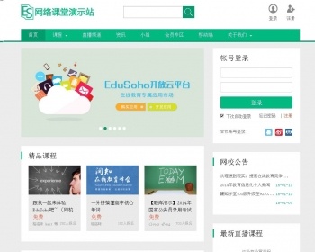 “EduSoho”是一个开源的在线教育网站建站系统,采用全新的互联网的设计思路,将线上支付,线上教学,线上学习,线上讨论反馈融为一体,更增加web2.0元素,如个人主页,关注体系,让在线教育更具有粘性,让学员更易使用。不仅如此,EduSoho更有完整的网站管理功能,让客户轻松进行网站管理、教学管理。