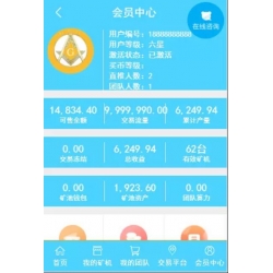 ③可售余额:〔矿池资产〕释放的币直接到这里,矿池资产释放是按照千分之二来释放,你矿池资产有500个币,那你一天就释放1个币,你矿池资产有1000个币,你一天就可以释放2个币,你矿池资产有2000个币,你一天就可以释放4个币,释放的币直接到〔可售余额〕,这里的币就是你可以卖的币。