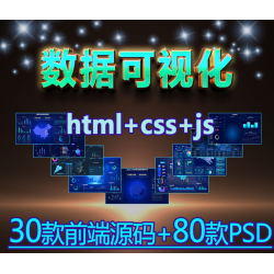 大数据可视化大屏模板h5前端源码html+psd素材echarts图表报表UI