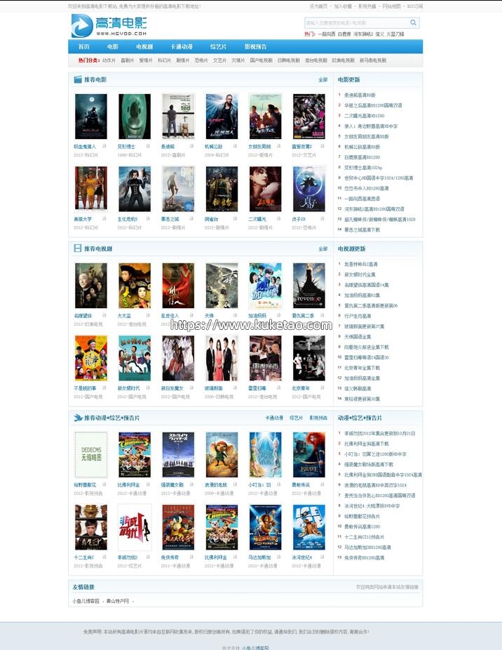 源码说明:分享大型PHP在线看电影门户网站源码,蓝色模板,非常漂亮大方;可生成静态页面且带有采集功能。在线看电影程序源码使用的是梦织内核开发制作,栏目有动作片,喜剧片,爱情片,科幻片,剧情片,悬疑片,文艺片,战争片,恐怖片,灾难片,连续剧,动漫,怀旧,综艺等等