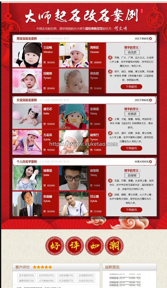 在线起名网源码pc端和wap端可选支持在线支付后显示八字起名结果