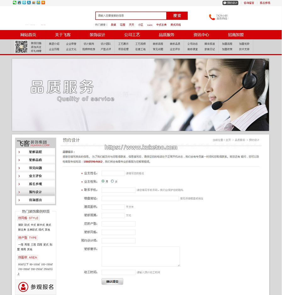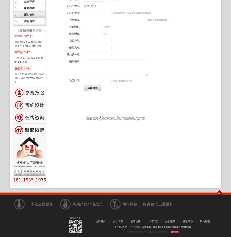 2、预约设计,报名参观,咨询留言表单手机号码项必须填写正确手机号格式才能提交,避免了软件恶意批量提交,造成后台一堆垃圾留言的烦恼