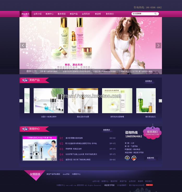 模板介绍:FK模板中心最新发布美容产品网站模板,适合美容产品,化妆品,面膜等网站建设使用。导航带下拉功能。